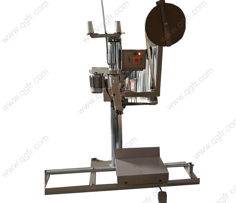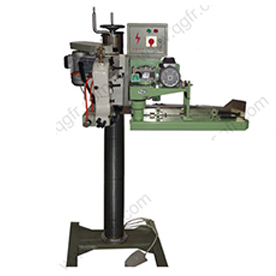 Simply operating handle can move up and down the sewing head. Provision of casters allows the machine to be moved easily. The low position of the carrier table allows easy loading and un-loading of bags. The carrier table is equipped with anti-derailing device and automatic return device.