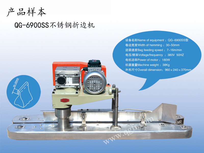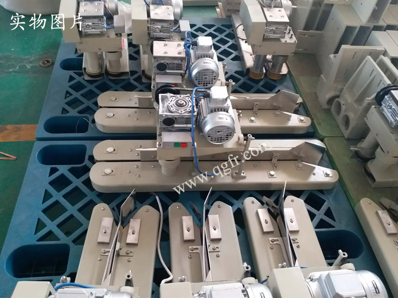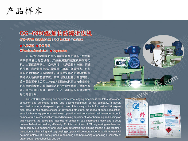 QG6900 bags feed-in device is a long type feed-in device, which is used to feed the filled bags into the sewing machine and fold over the bag top. This model is used together with the GK series automatic bag closing sewing machines.