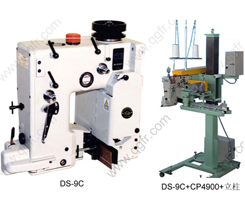 DS-9C Heavy Duty Bag Closing Machine: The fastest single needle bag closing machine (2700 rpm) for all kinds of filled bags. Well-balanced rotational parts ensure very little vibration. Ideally suited for use with height-speed bag filling lines where conveyor speed of 25m/min. All parts are protected against the effects of dust. A unique but simple enclosed oil bath lubrication system greatly extends the life of moving parts and reduces maintenance costs. Model DS-99 is equipped with pneumatic guillotine type crepe-tape cutter.