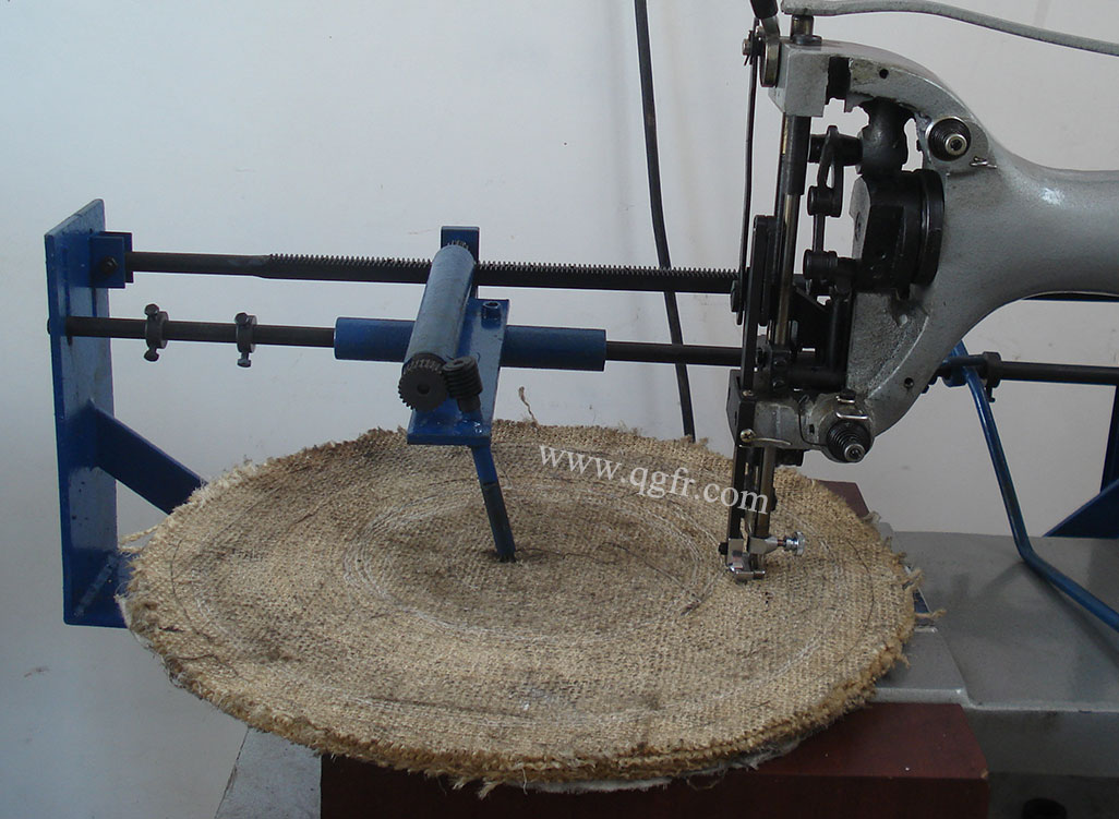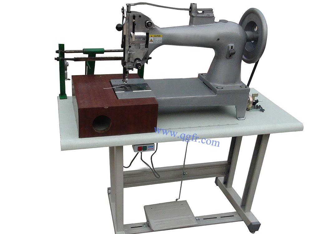 GB4-1M Linen Wheel Sewing Machine: adopts single needle oscillating shuttle to form lockstitch. The maximum sewing thickness can be 25 mm. Patent oversize oscillating shuttle is incorporated. It could be equipped with synchronizer for automatic sewing round plate, which could improve the sewing speed and sewing quality efficiently.