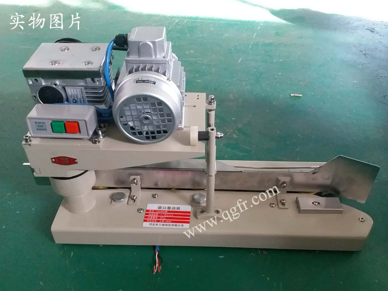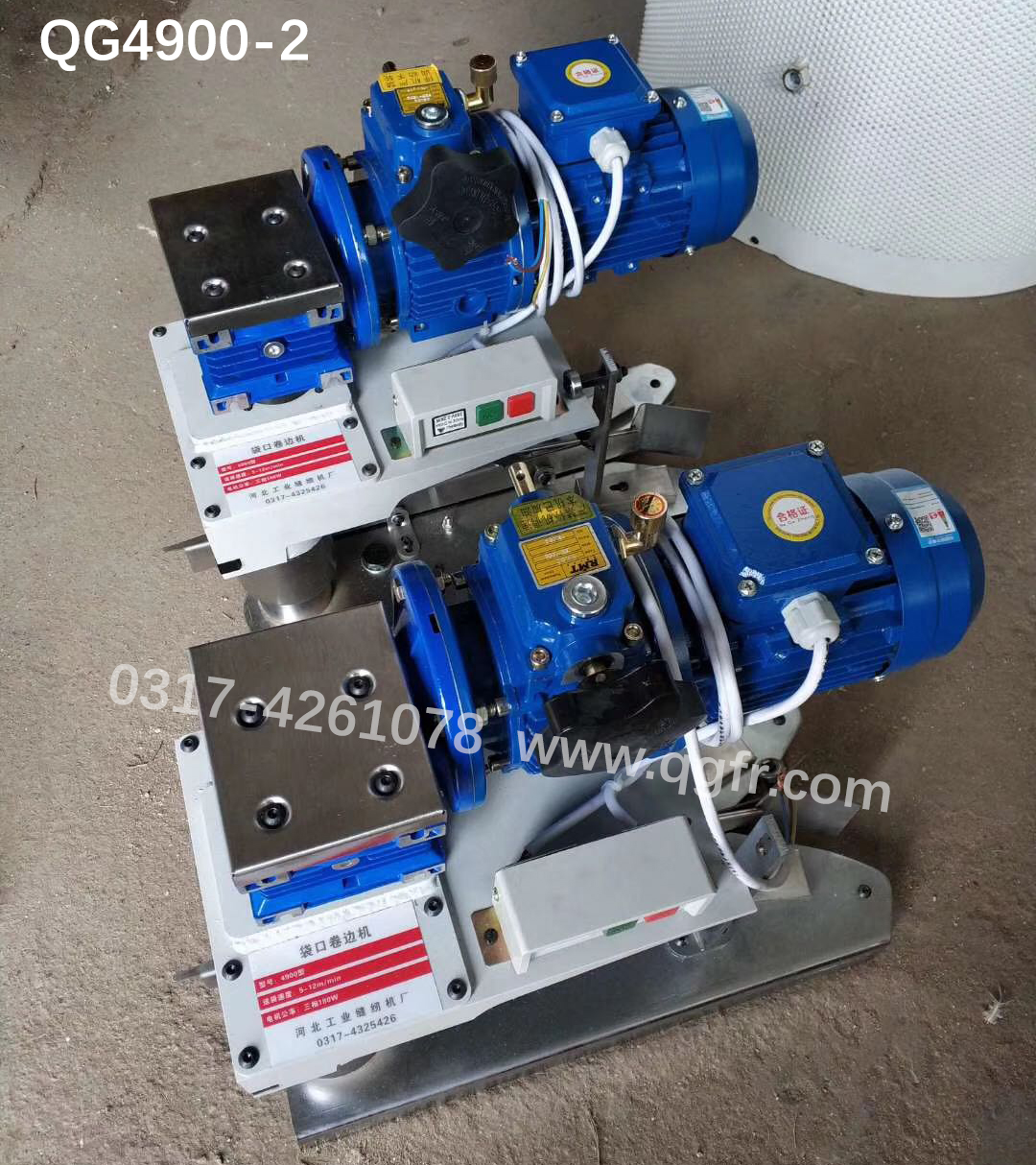 QG4900-2折邊機(短款)是針對大米等行業(yè)適應(yīng)短款輸送機而設(shè)計的袋子折邊機,輸送機長度可降低至2米,實現(xiàn)包裝袋送袋、袋口折邊功能。