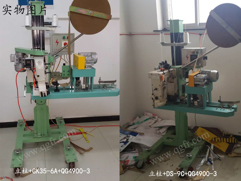 立柱+GK35-6A+QG4900-3:送袋、修剪袋口、包紙帶、縫合。適用于厚料、覆膜編織袋、紙塑復(fù)合袋。