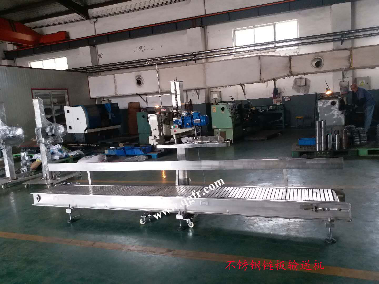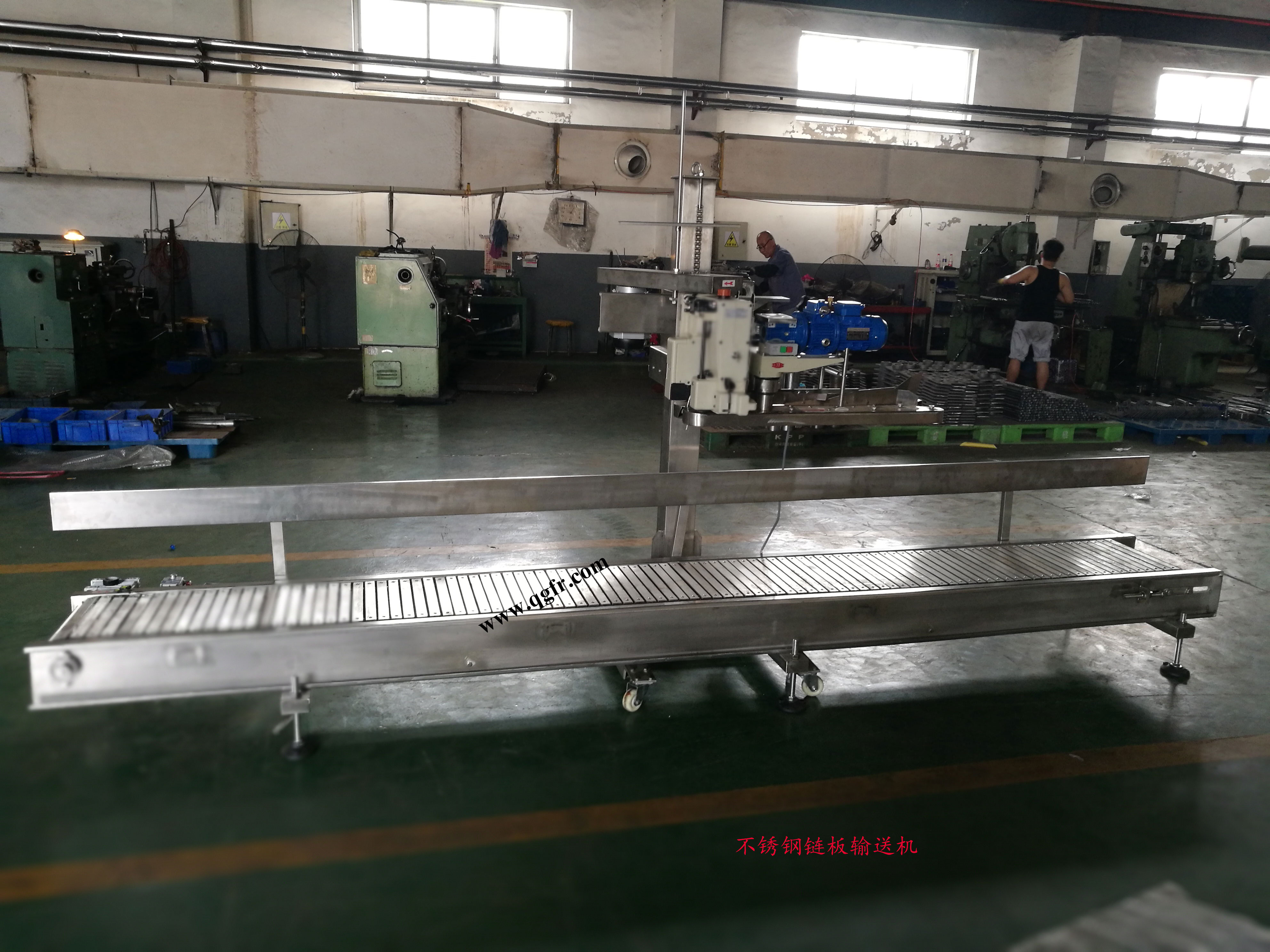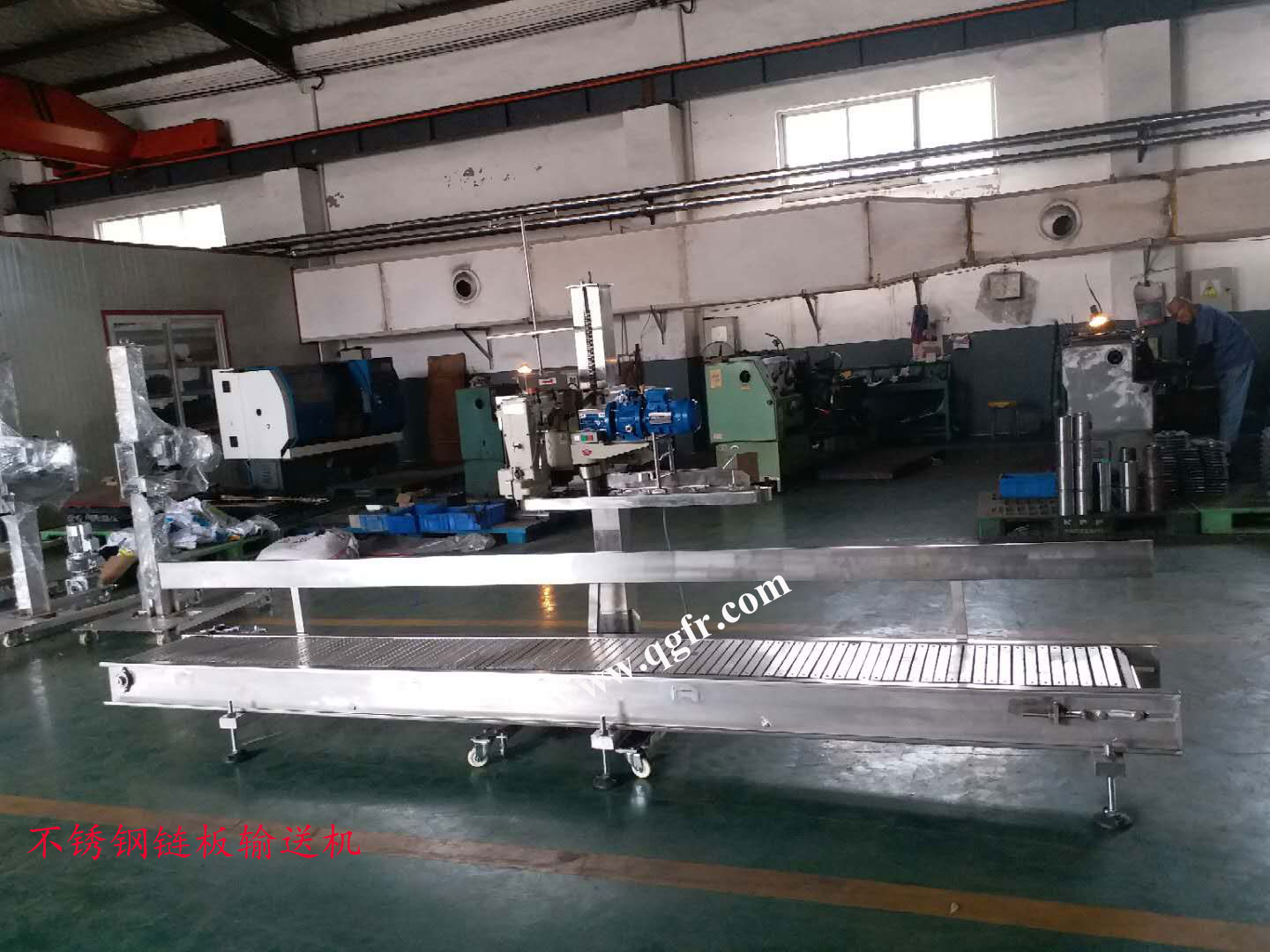 該機組由全自動縫包機、袋子折邊機、支撐立柱、鏈板輸送機以及相配套的電控系統(tǒng)組成,輸送機、支撐立柱、電控箱、折邊機均采用不銹鋼材質(zhì),適用于食品、化工等行業(yè)對設(shè)備材質(zhì)有特殊要求的場合。(注:由于縫包機零件結(jié)構(gòu)復(fù)雜,而不銹鋼難以加工,暫時尚沒有不銹鋼形式的縫包機)