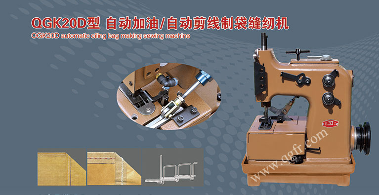 GK20-2和GK20-2F型配置有氣動切刀,可以配備在自動縫底機上實現(xiàn)編織袋的自動縫底、縫口、自動切線等。GK20-2F為反方向機型。